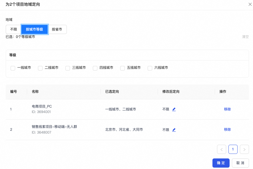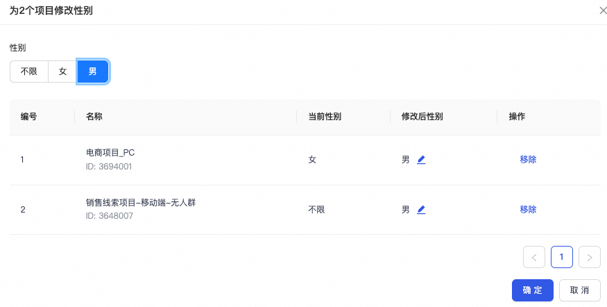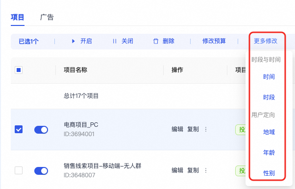 • 批量修改地域/年龄/性别定向