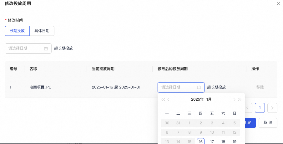 • 批量修改投放开始时间:分长期投放和具体日期,按需求设置自定义投放时段。