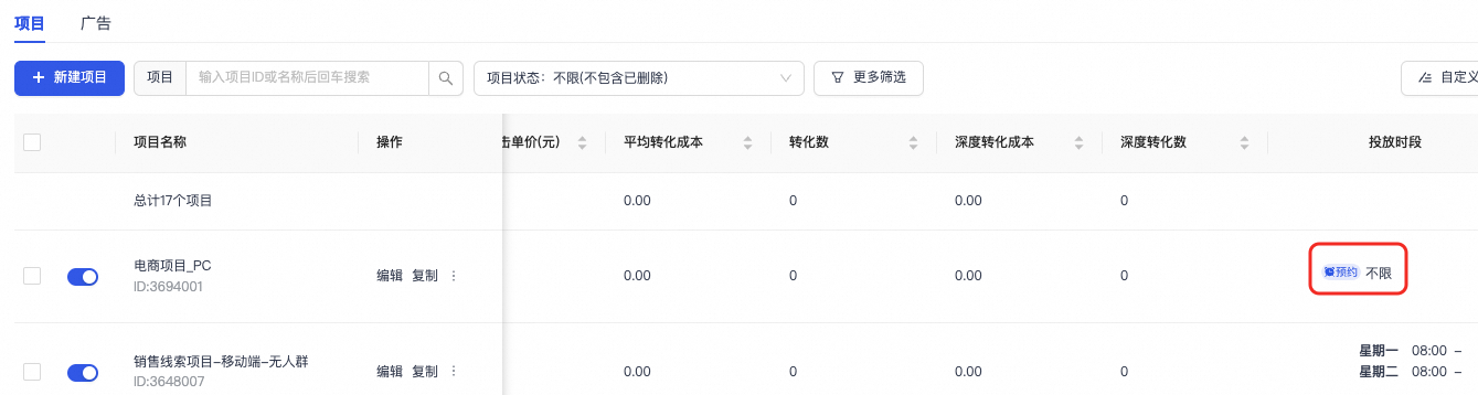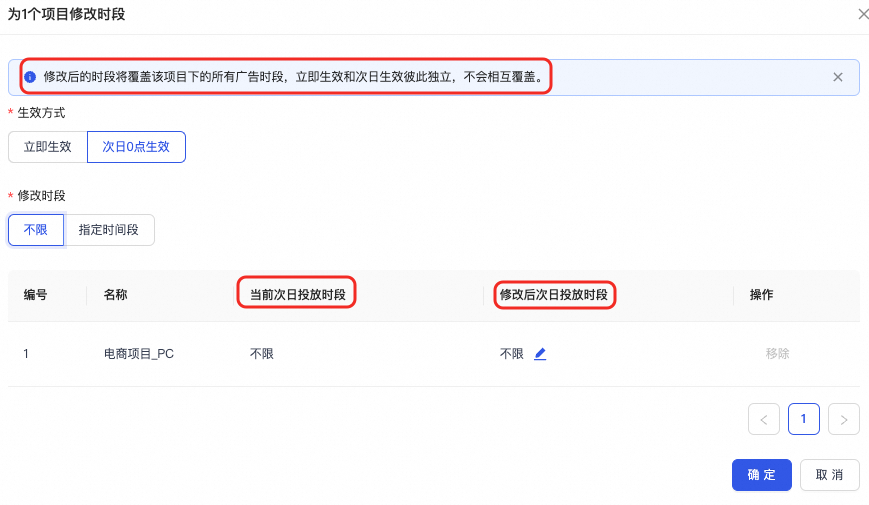• 优化次日设置时段显示:立即生效和次日时段彼此独立,操作后不会相互覆盖。同步增加“次日投放时段”字段并在投放列表中增加预约按钮,点击可显示设定的次日时段。